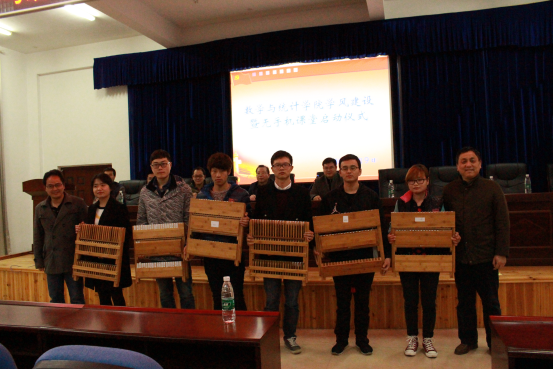 随后,彭老师就我院上周旷课情况进行通报,根据《吉首大学学生守则》旷课达到一定次数给予警告处分,希望此次通报能给同学们敲响警钟。同时说明“无手机课堂”的具体内容与注意事项,让大家加以重视,养成好的学习习惯。接着曾一凡和莫宏敏为各班发放“手机栖身窝”,并合影留念。