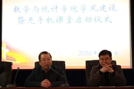 本网讯(谭明丽周嵘)2016年3月8日及9日,我院相继于吉首大学大田湾校区小礼堂与砂子坳校区老干活动中心召开我院学风建设暨无手机课堂启动仪式,我校黎奇升副校长莅临启动仪式,院党总支书记戴军,副院长方东辉、莫宏敏,院党总支副书记曾一凡,院长助理欧祖军,学工办辅导员老师,各班班主任及全体学生参与会议。